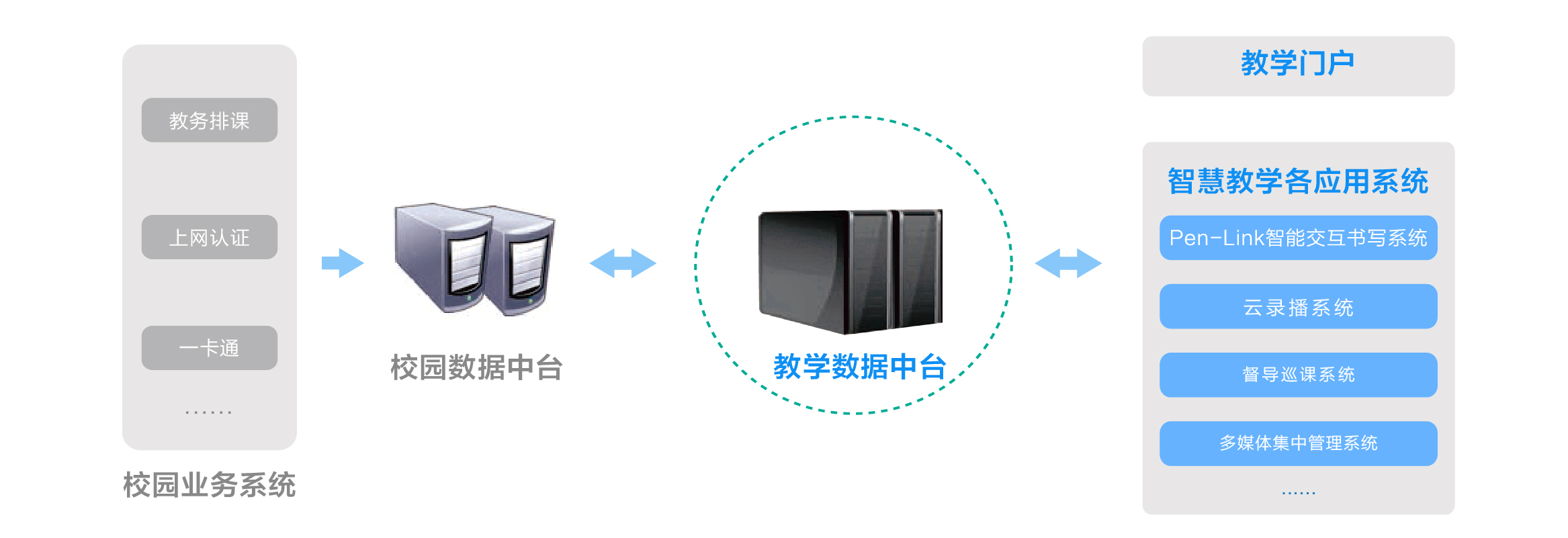 ITI智慧教学融合平台,与学校基础数据及各教学应用系统进行对接,承上启下,减轻学校数据中心压力,各教学应用系统深度融合,为教师、学生、教学管理者、教室管理者及督导人员提供一站式应用,满足各角色业务需求。平台采集课堂教学课前课中课后全流程多维度数据,构建多维度全量大数据体系,通过数据分析及智能化应用,为教育教学改革提供数据支撑。