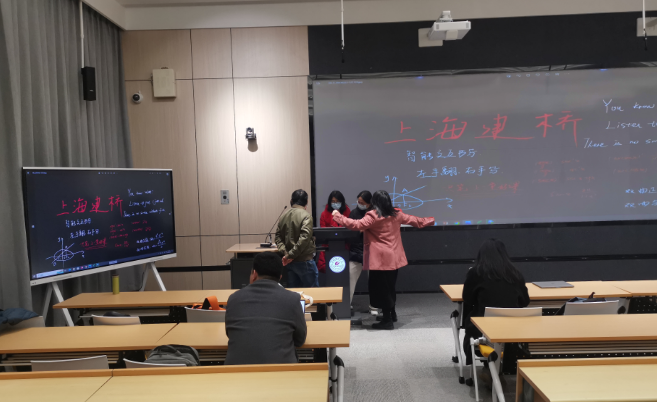此次授课老师体验的智慧教室为上海建桥学院最新建设的两间智慧教室,于2023年1月建设完成,目前已在商学院的开始使用。