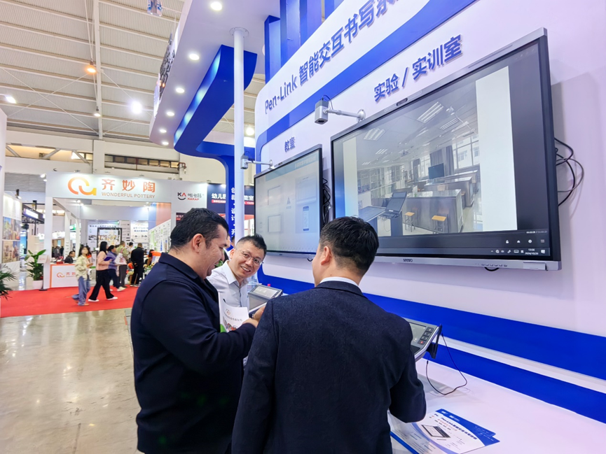 展会现场,华璨电子的展馆内人声鼎沸,参观者络绎不绝。公司匠心打造的Pen-Link智能交互书写系统成为展会的一大亮点,吸引了众多教育专业人士的驻足体验与交流。Pen-Link智能交互书写系统不仅被应用教室,同样还广泛应用于实验室、实训室、会议室、报告厅等多种场景,为教育行业的信息化发展注入了新的活力。