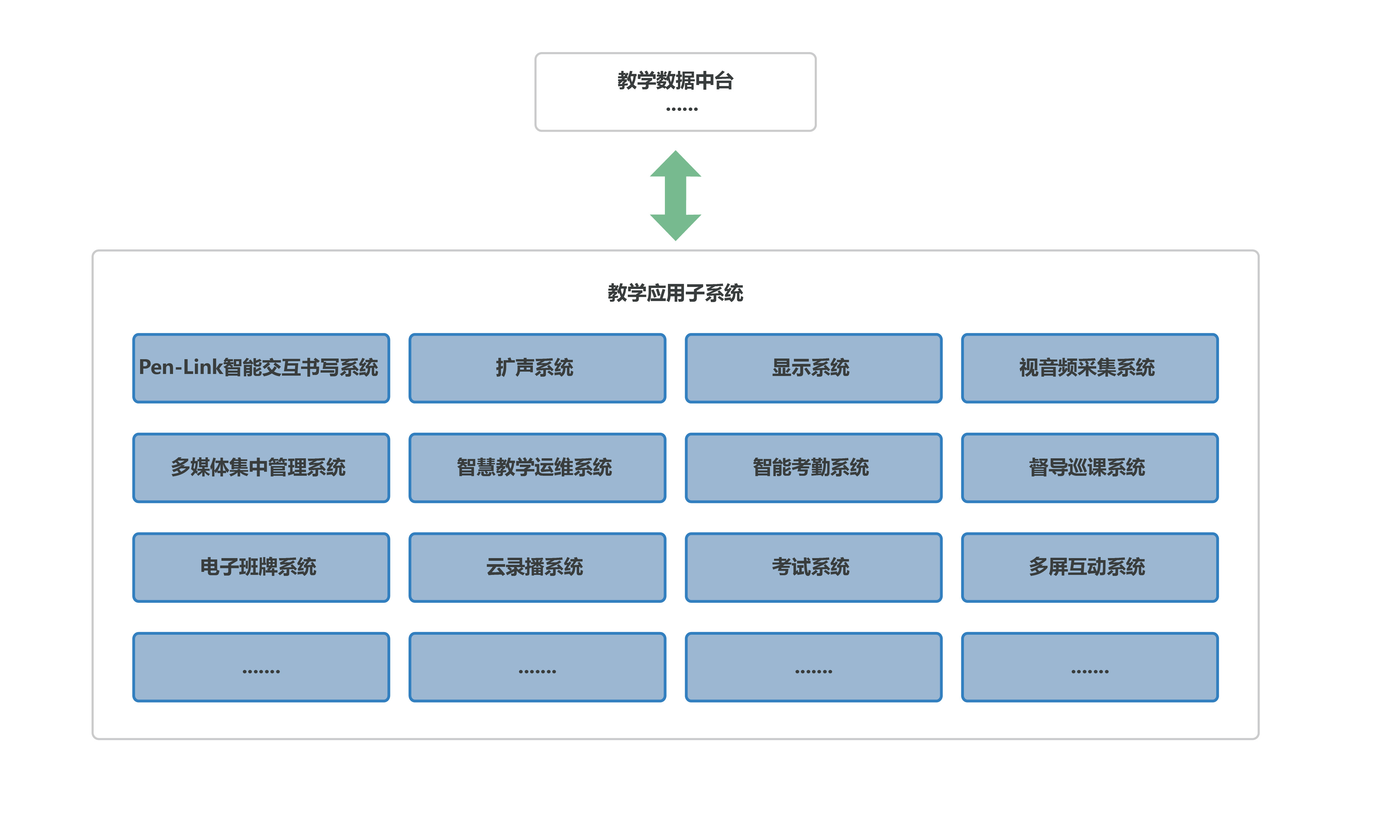 各教学应用子系统深度有机融合,全局管控,既避免系统林立,又确保其整体性、实用性、便利性。